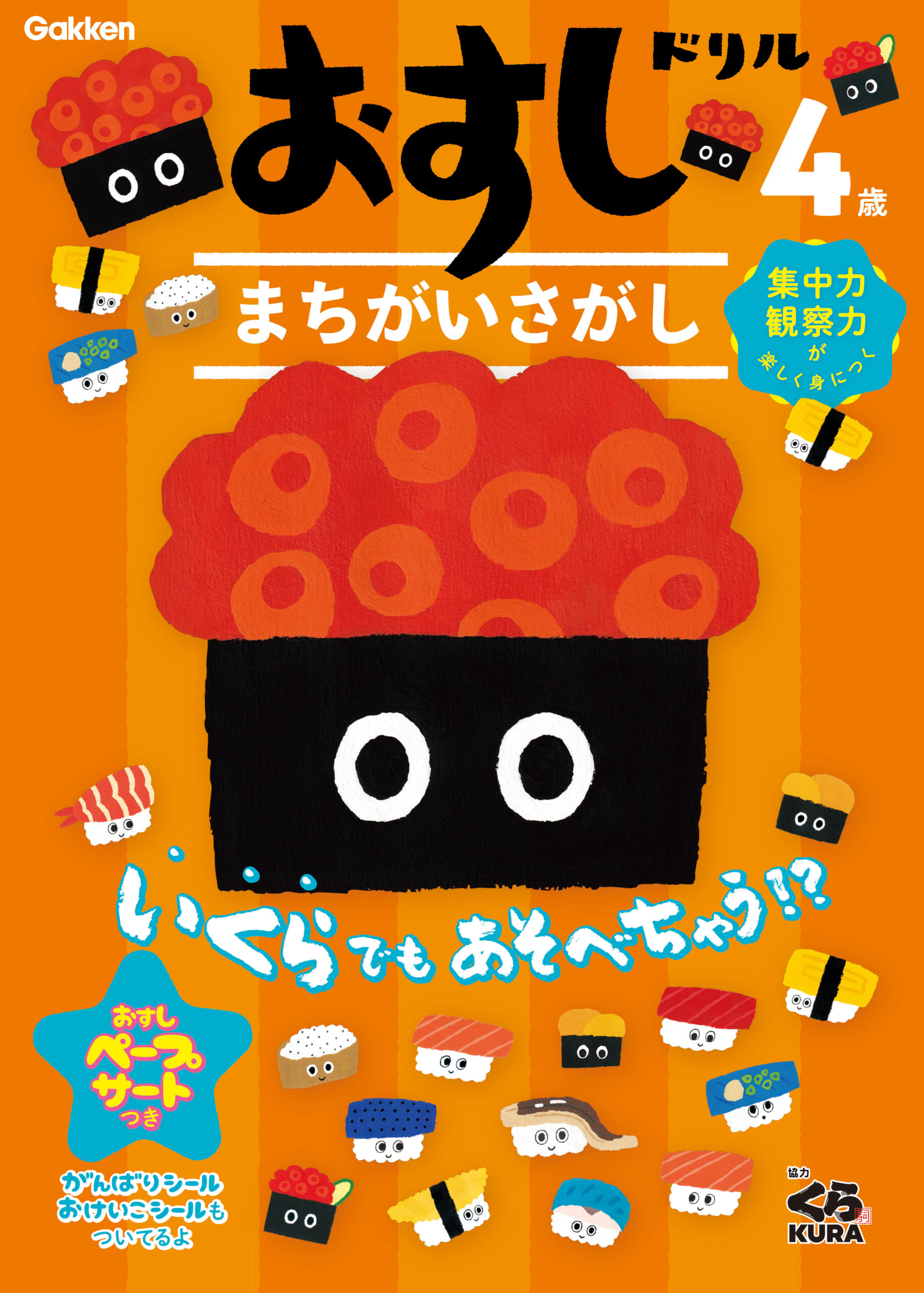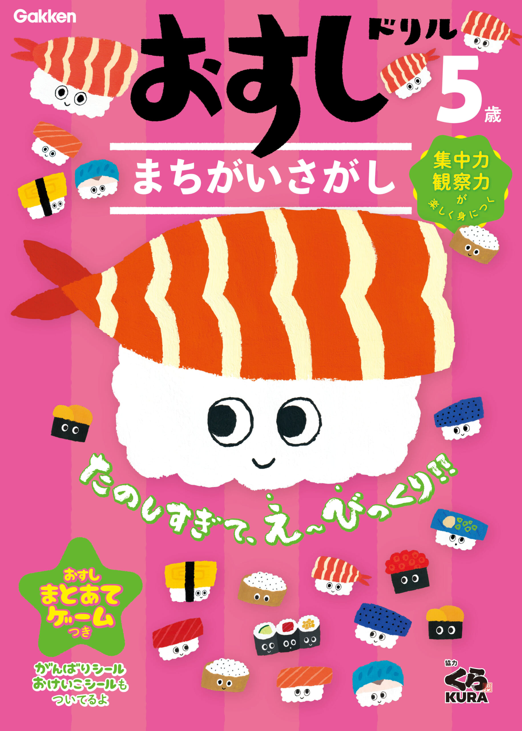 “食を通じて次世代を担う子どもたちの発育に貢献したい”という思いが、おすしドリルとマッチし、新刊の「まちがいさがし」では大人気回転ずしチェーン「くら寿司」さんとコラボ!