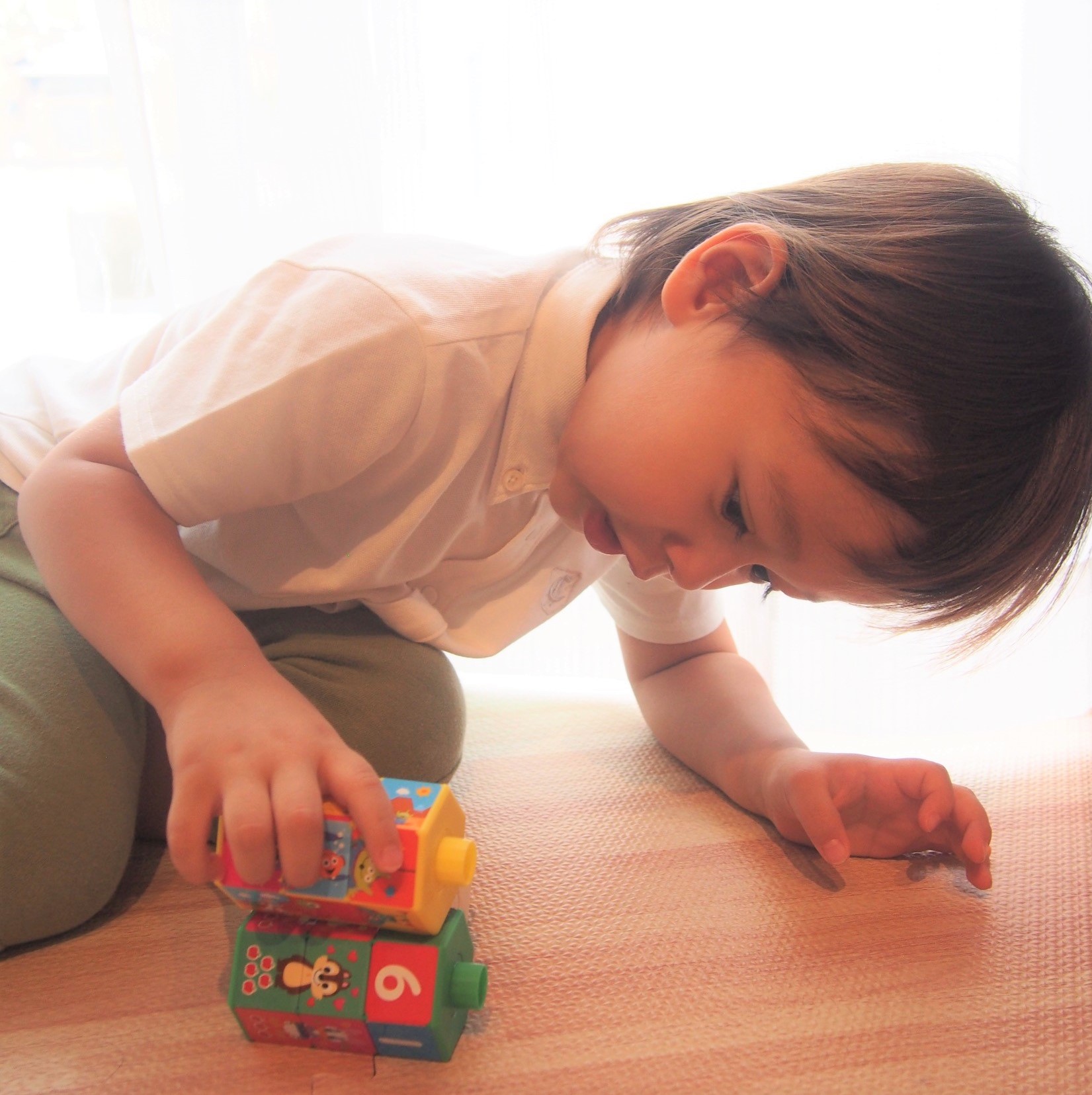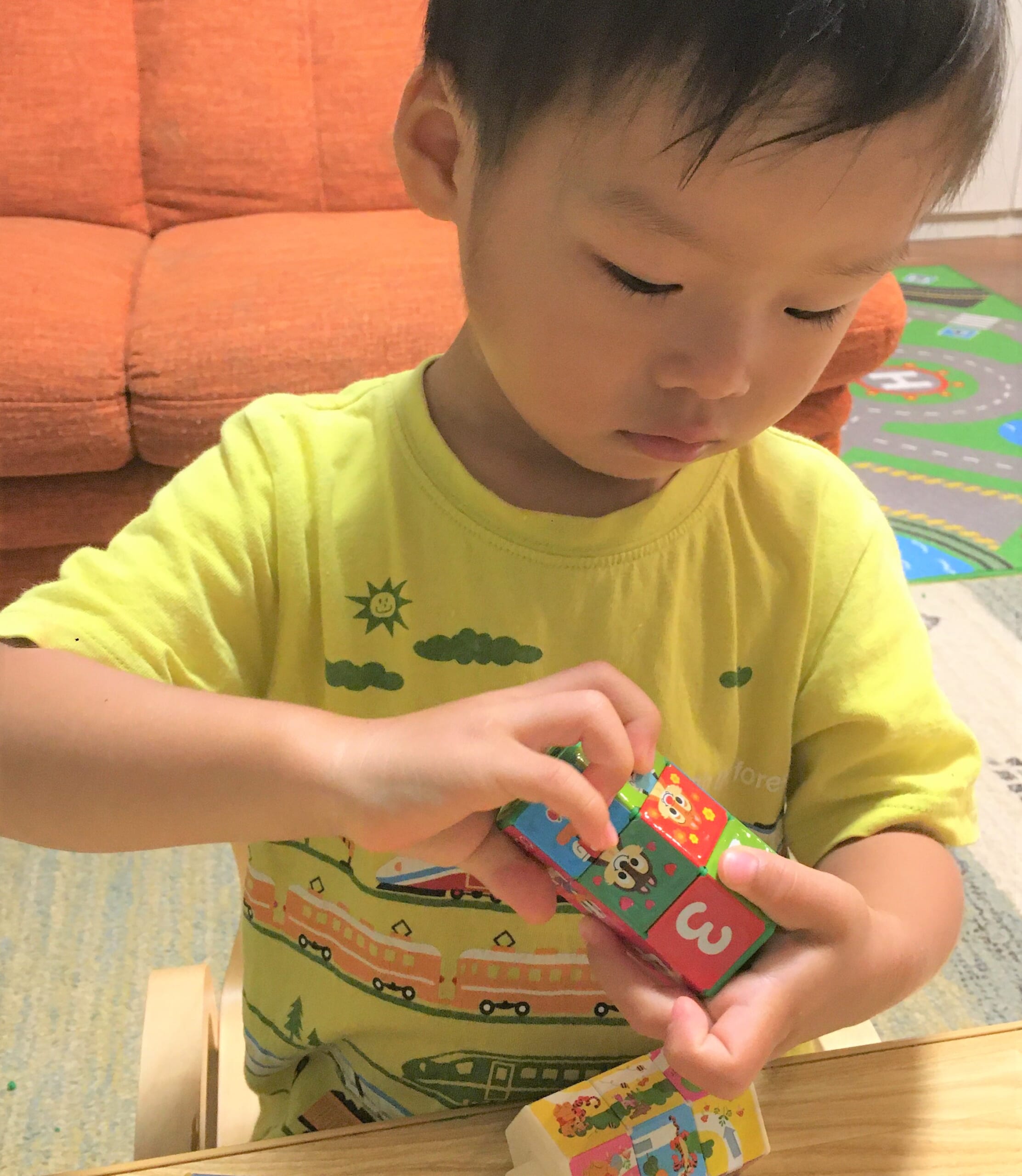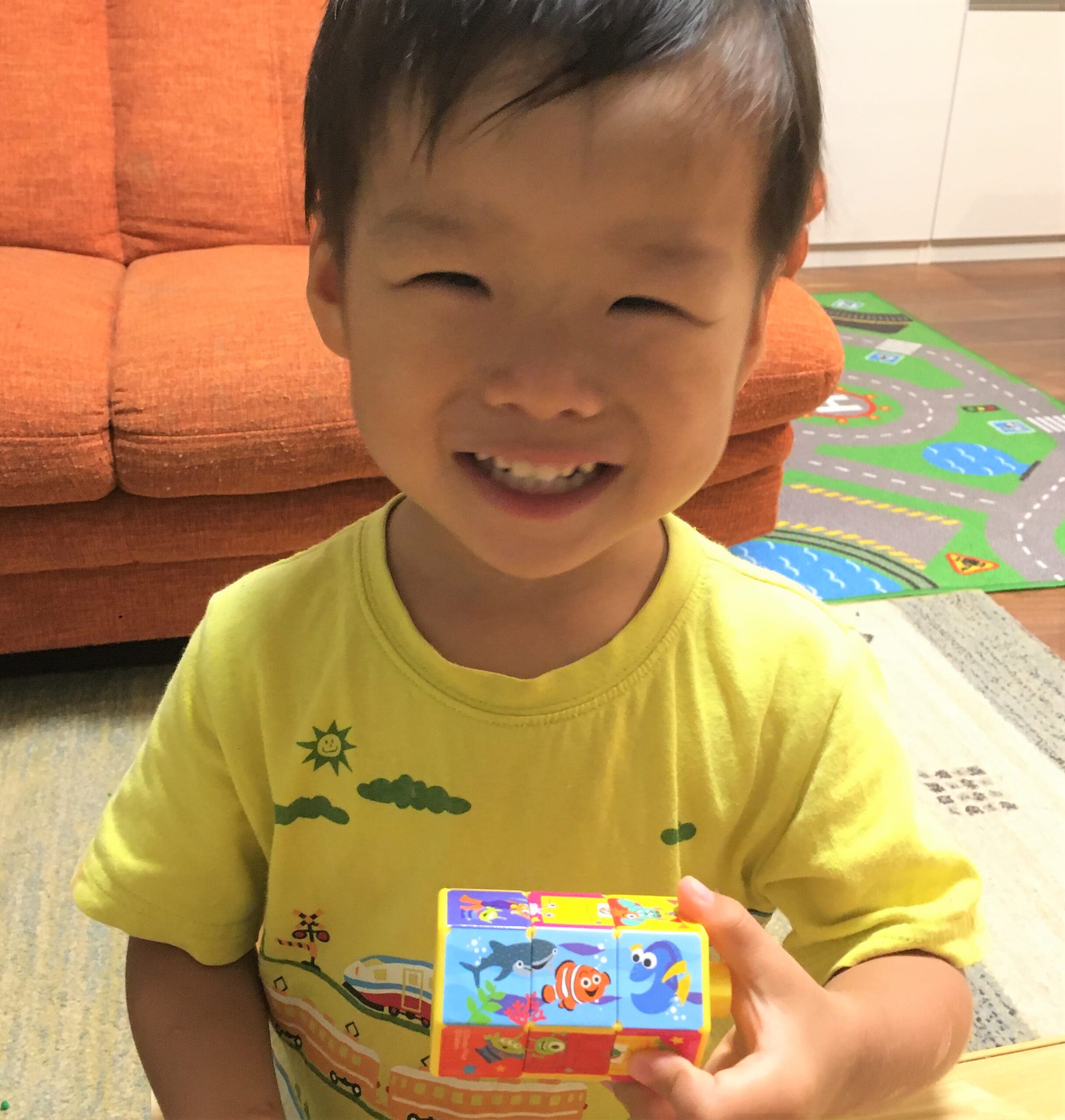 アレックスくんは、パズルを高速でくるくる回し、絵合わせができるようになり、指の動きまで器用になったようです。数字にきょう味を持ち、色々な数を数えることもふえてきたそう!